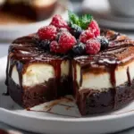 Eine extravagante Torte, die den schokoladigen Genuss von Brownies und die cremige Textur eines klassischen Käsekuchens vereint.