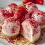 Schnelle und gesunde Erdbeer-Käsekuchen-Proteinkugeln, die die Geschmacksexplosion eines klassischen Käsekuchens bieten – ideal für Snacks oder nach dem Fitness.