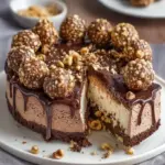 Eine köstliche, cremige Ferrero Rocher Torte ohne Backen, die die Aromen von Haselnusscreme und Schokolade vereint.