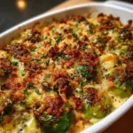 Ein köstliches Rosenkohl-Gratin mit cremiger Käsesauce und einer knusprigen Oberseite, ideal für jede Gelegenheit.